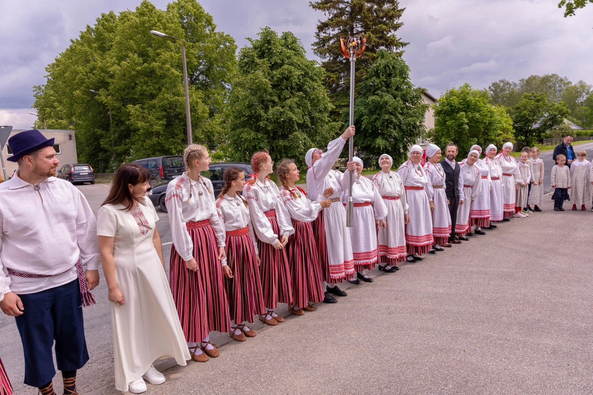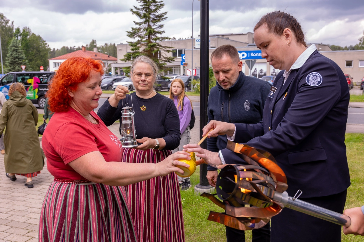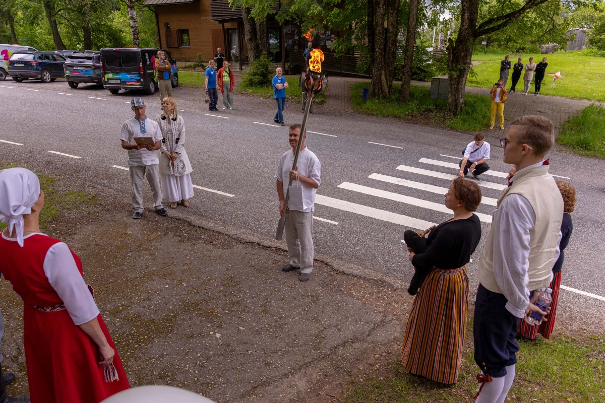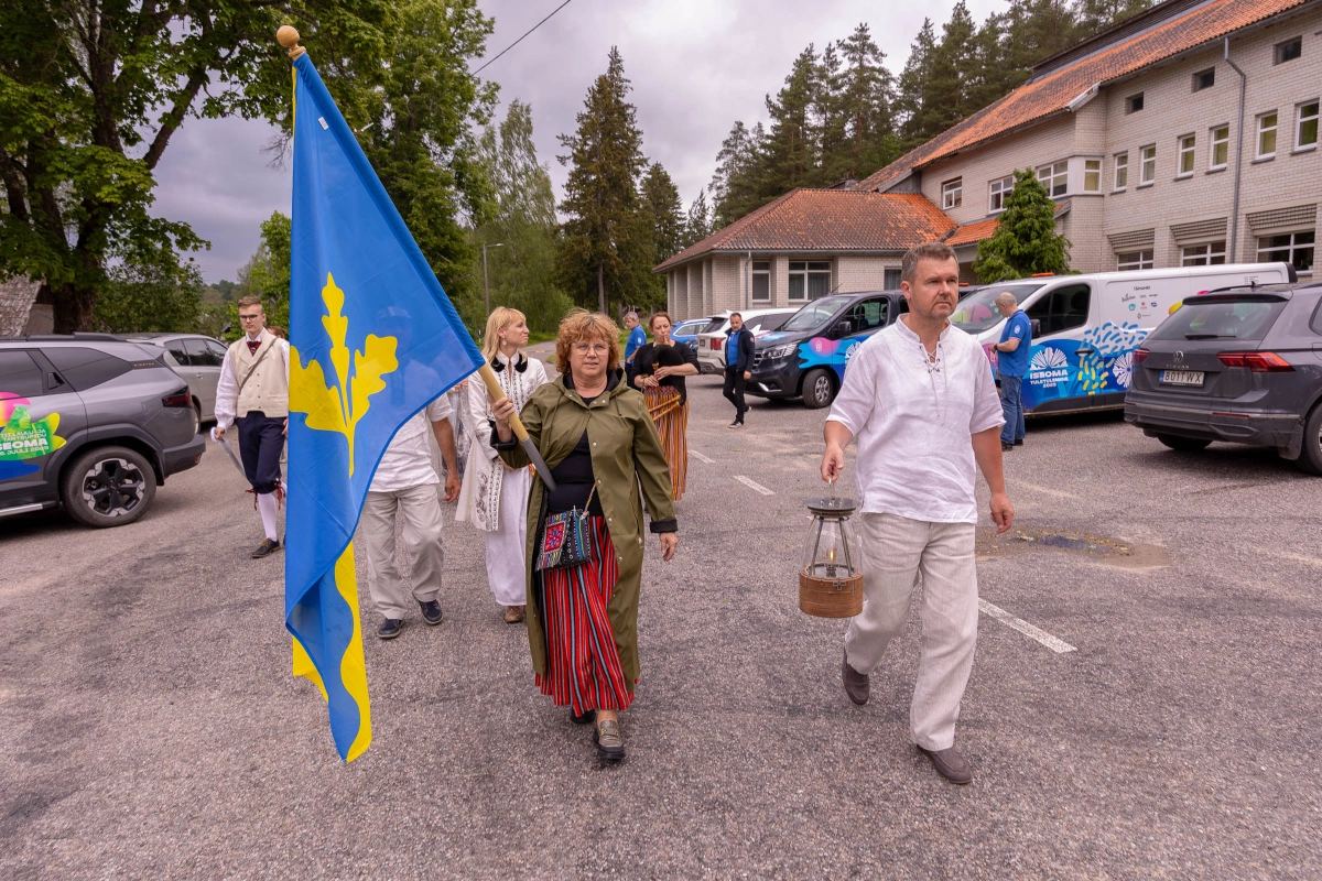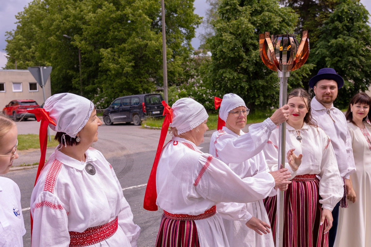 The journey of the Song and Dance Festival "Iseoma" fire passed through Tallinn via Võru Parish, stopping on June 18th at Vastseliina Community Center, August Teppo's farm, near Parksepa at the Võru Parish Library, next to the memorial stone near Osula Basic School, and at Roosu Farm in Sulbi.