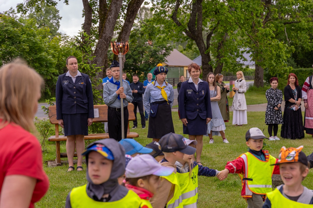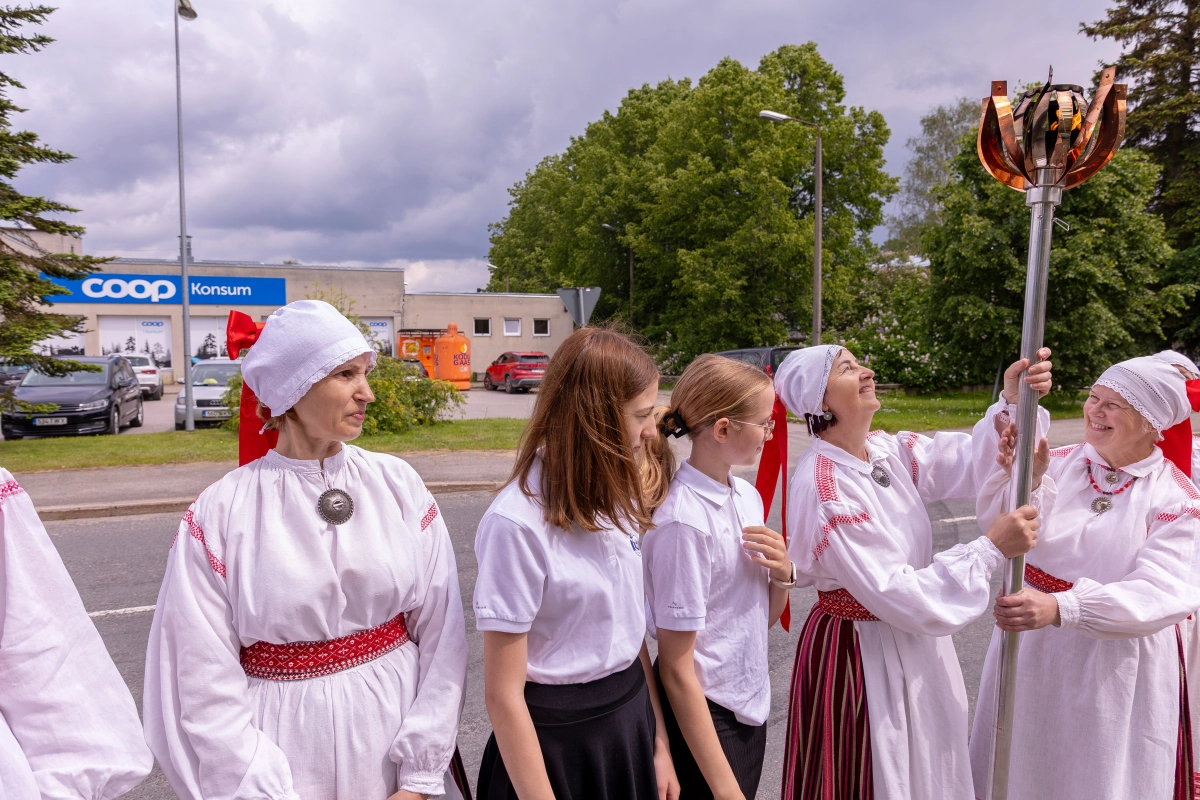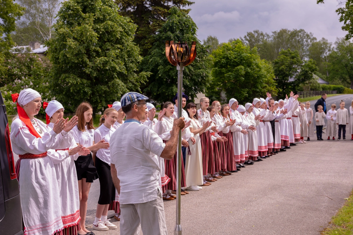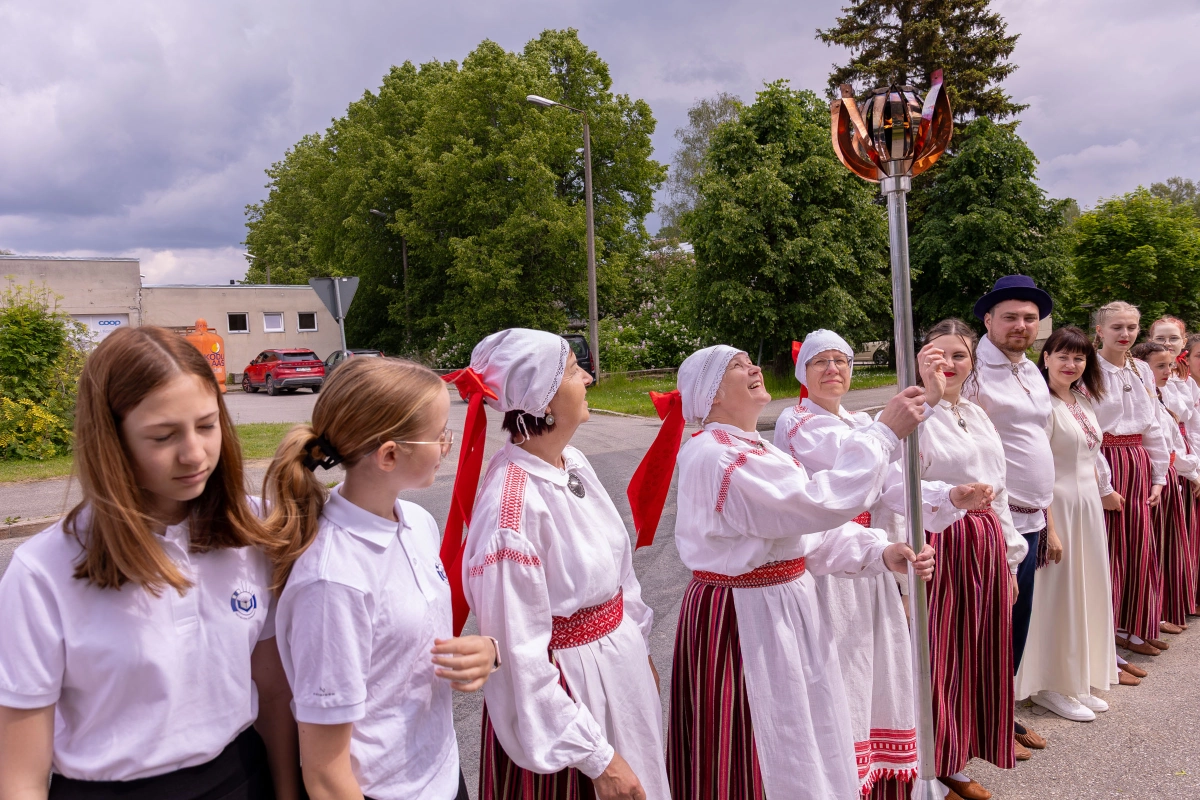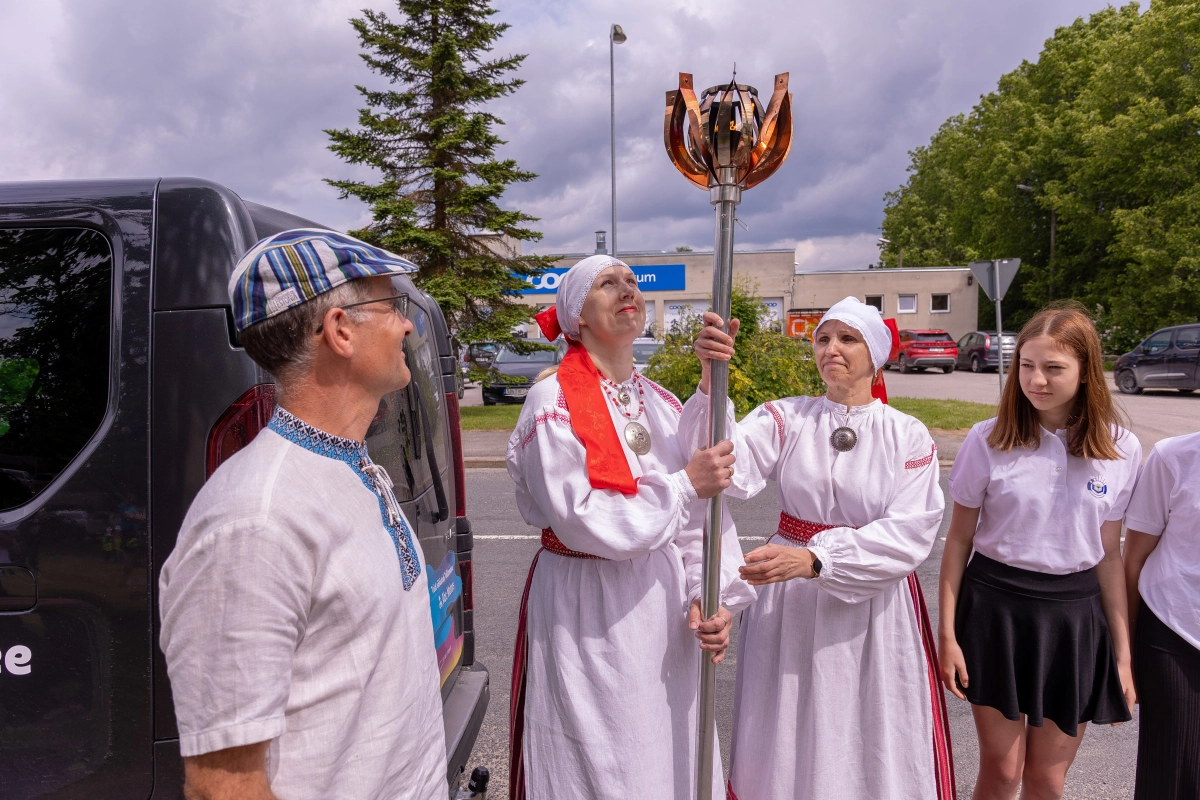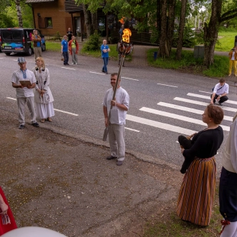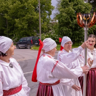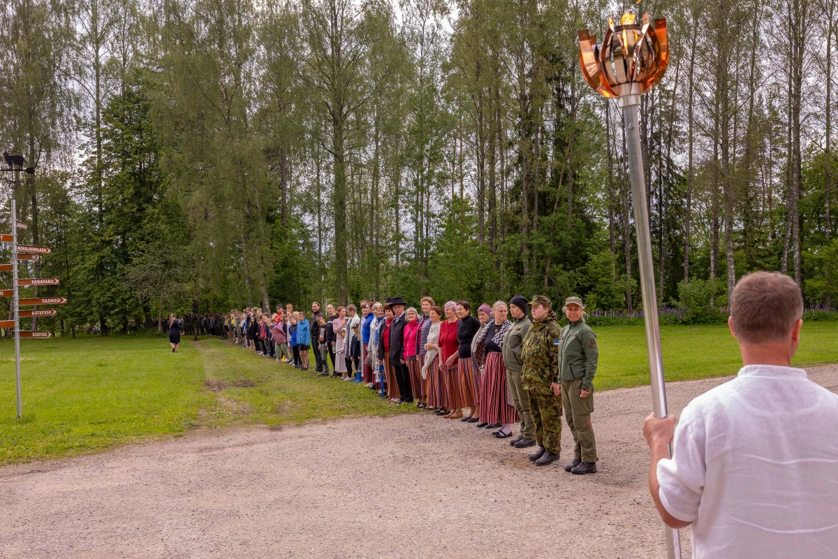 The journey of the Song and Dance Festival "Iseoma" fire passed through Tallinn via Võru Parish, stopping on June 18th at Vastseliina Community Center, August Teppo's farm, near Parksepa at the Võru Parish Library, next to the memorial stone near Osula Basic School, and at Roosu Farm in Sulbi.