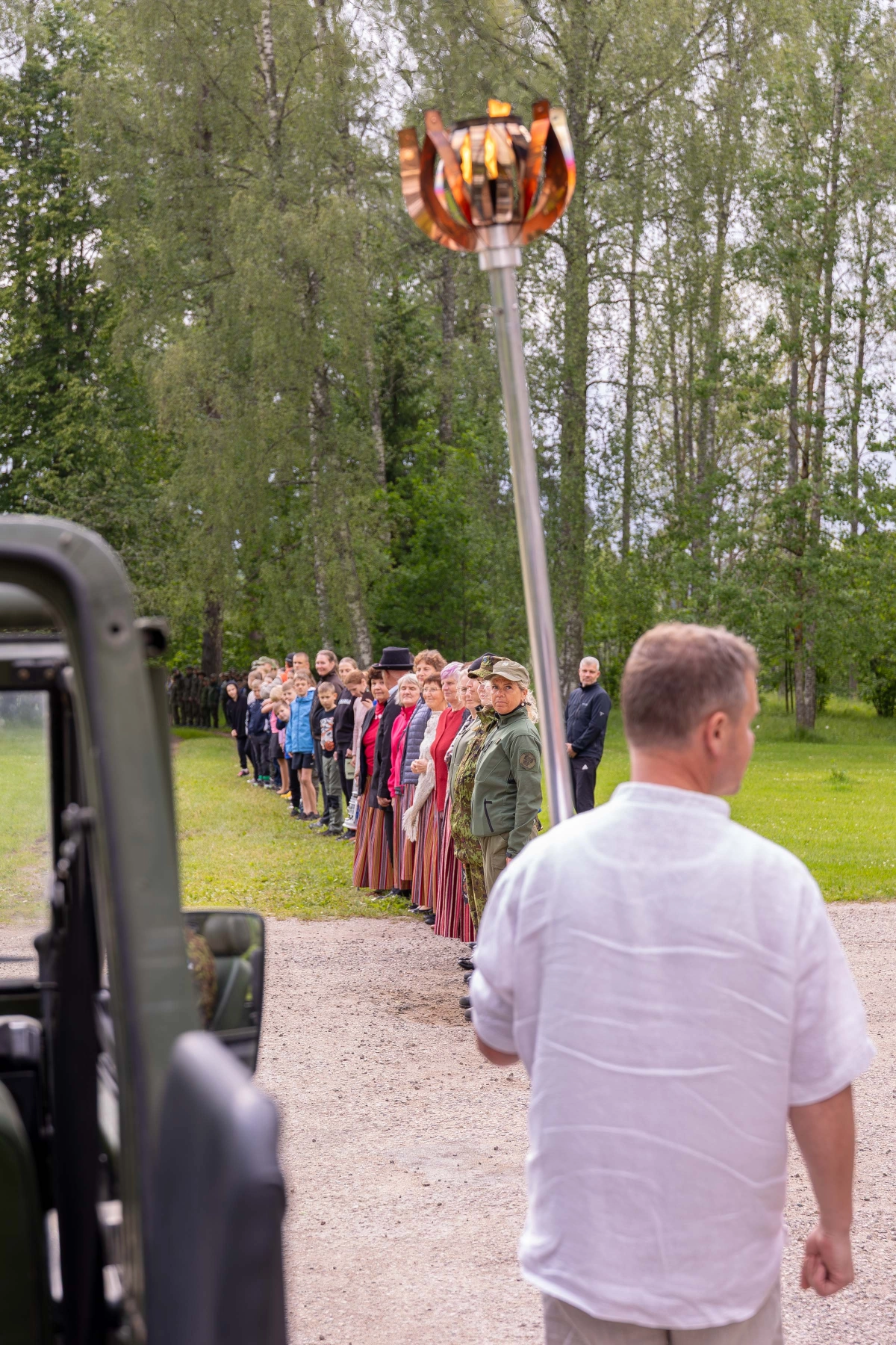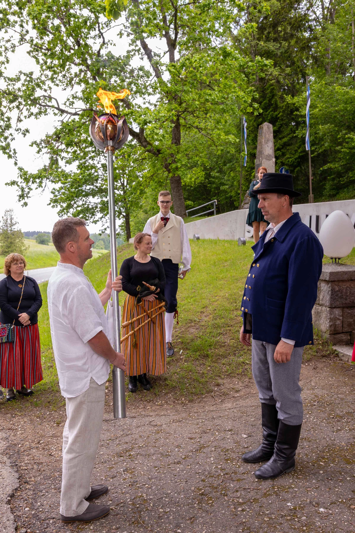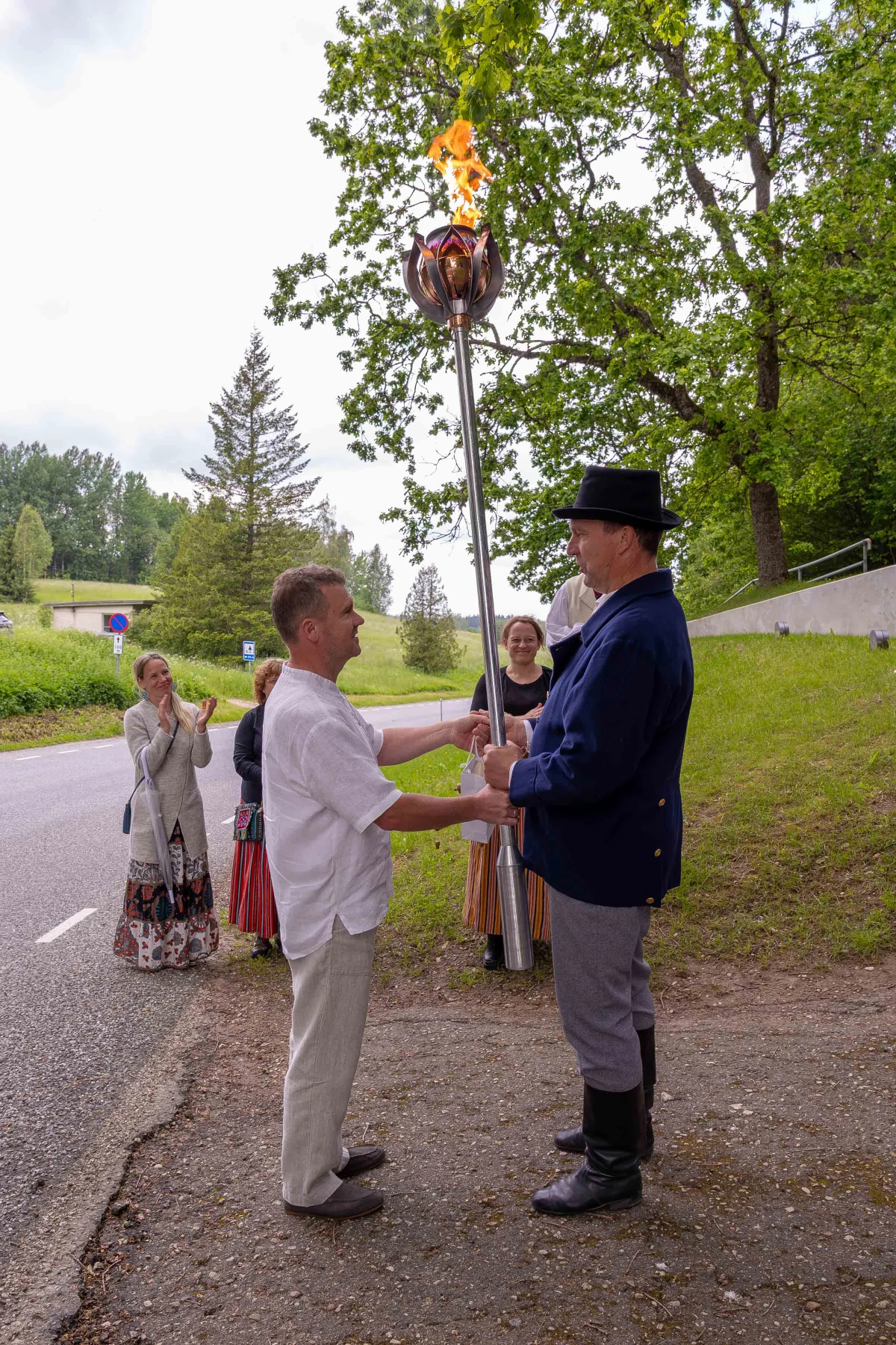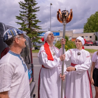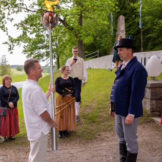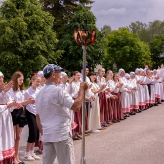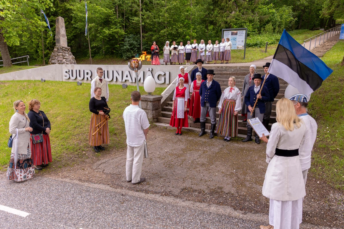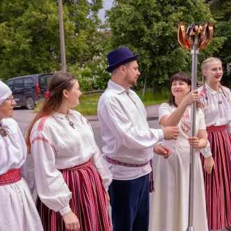The journey of the Song and Dance Festival "Iseoma" fire passed through Tallinn via Võru Parish, stopping on June 18th at Vastseliina Community Center, August Teppo's farm, near Parksepa at the Võru Parish Library, next to the memorial stone near Osula Basic School, and at Roosu Farm in Sulbi.