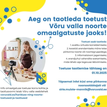 Taas on võimalus esitada taotlusi Võru valla noorte omaalgatuse toetuse >>>